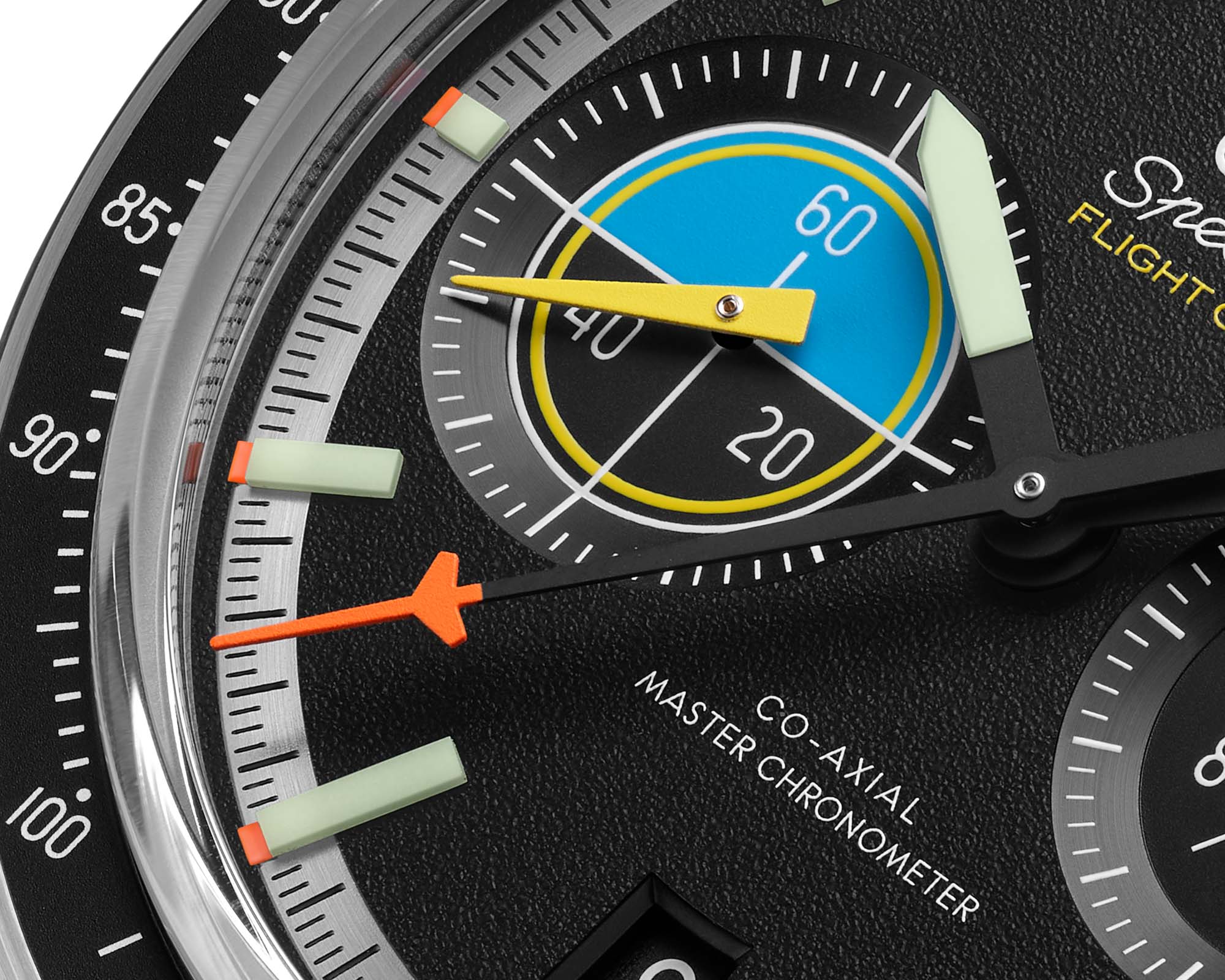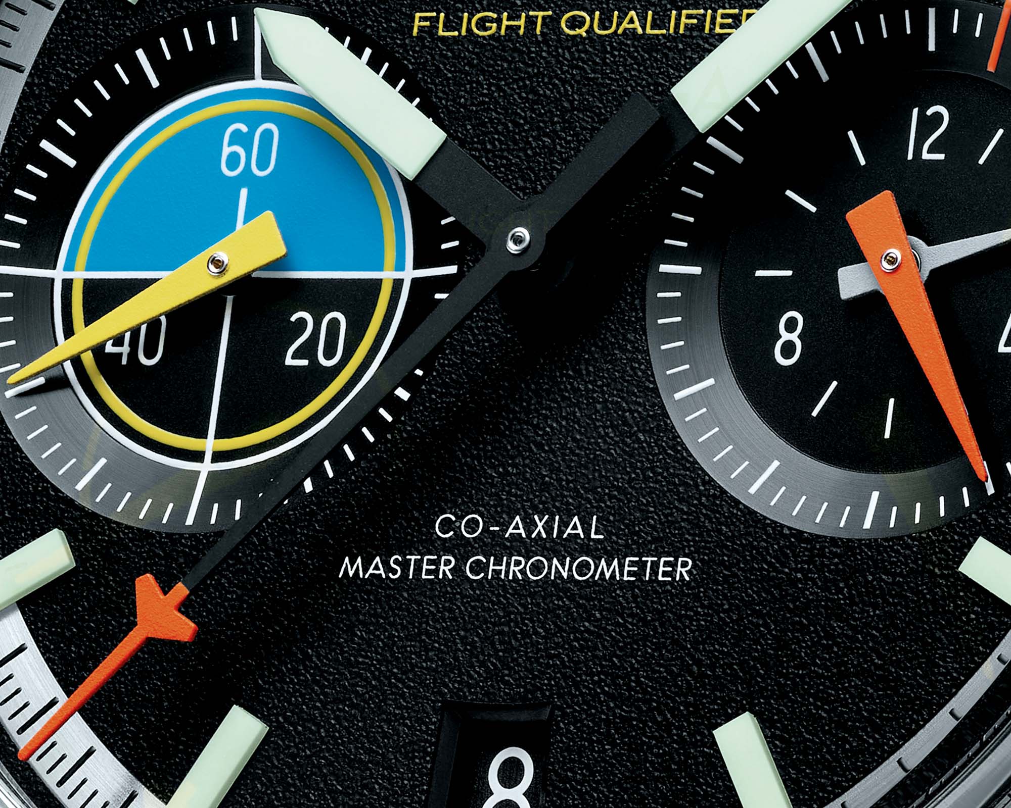 That added heft does give it a more robust feel, in line with its “Flight Qualified” persona. The caseback may not have seen the inside of a military aircraft, but the impression it gives off is undeniably one of purpose. There’s even a faux artificial horizon indicator at 9 o’clock and a stylized minute subdial at 3 o’clock that vaguely mimics a burn rate gauge not that anyone can say for sure what that actually looks like. Whether these elements serve any real function is beside the point; it’s all about creating the vibe.