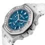 Replica Audemars Piguet Royal Oak Offshore Diamond Steel Ladies Watch 26231DST. Automatic self-winding chronograph movement. Stainless steel octagonal case 37 mm in diameter. Original Audemars Piguet steel diamond bezel punctuated with 8 signature screws. Scratch resistant glareproof sapphire crystal. Blue dial with “Lady Tapisserie” pattern and luminous baton hour markers. Royal Oak hands with luminescent coating. Date window between 4 and 5 o'clock. White leather strap with stainless steel deployant clasp.