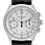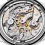Dial: Silver opaline dial with faceted white gold index and Roman numeral hour markers. Two subdials -- 30 minutes at 3, small seconds sub-dial at 9 o'clock aperture. White gold baton hands.
