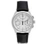 Bracelet: Black leather strap with 18K white gold deployant clasp.