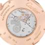 Case: 18k rose gold case 36.0 mm in diameter. Exhibition case back. Circular grained crown set with the blue sapphire cabochon.