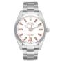 Dial: White dial with luminescent-inlay steel baton hands and orange hour markers. Orange lightning bolt sweeping seconds hand. Outer orange minute marker track.
